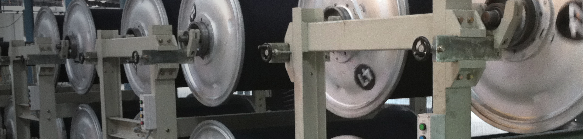 The beam creels can be designed to run 8 to 32 beams. The beams are supported on each side with frictionless ball bearings and a pneumatic loaded band brake on one side. A load cell roll located at the entrance to the size box is used to provide consistent tension from start to final and in all running conditions.The creel configuration can be supplied in a stationary or three different magazine styles. The illustration below shows all four creel configurations and the required work area necessary which is the highlighted tan area. Many factors are used in deciding which creel type is best for each application, production requirement, available space, room design and creel size. We have a creel option to meet any requirement.